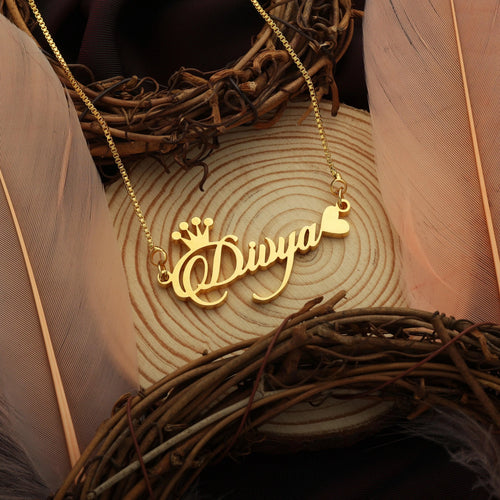 Bold Angular Script Custom Name Necklace – Personalized Crown Name Pendant